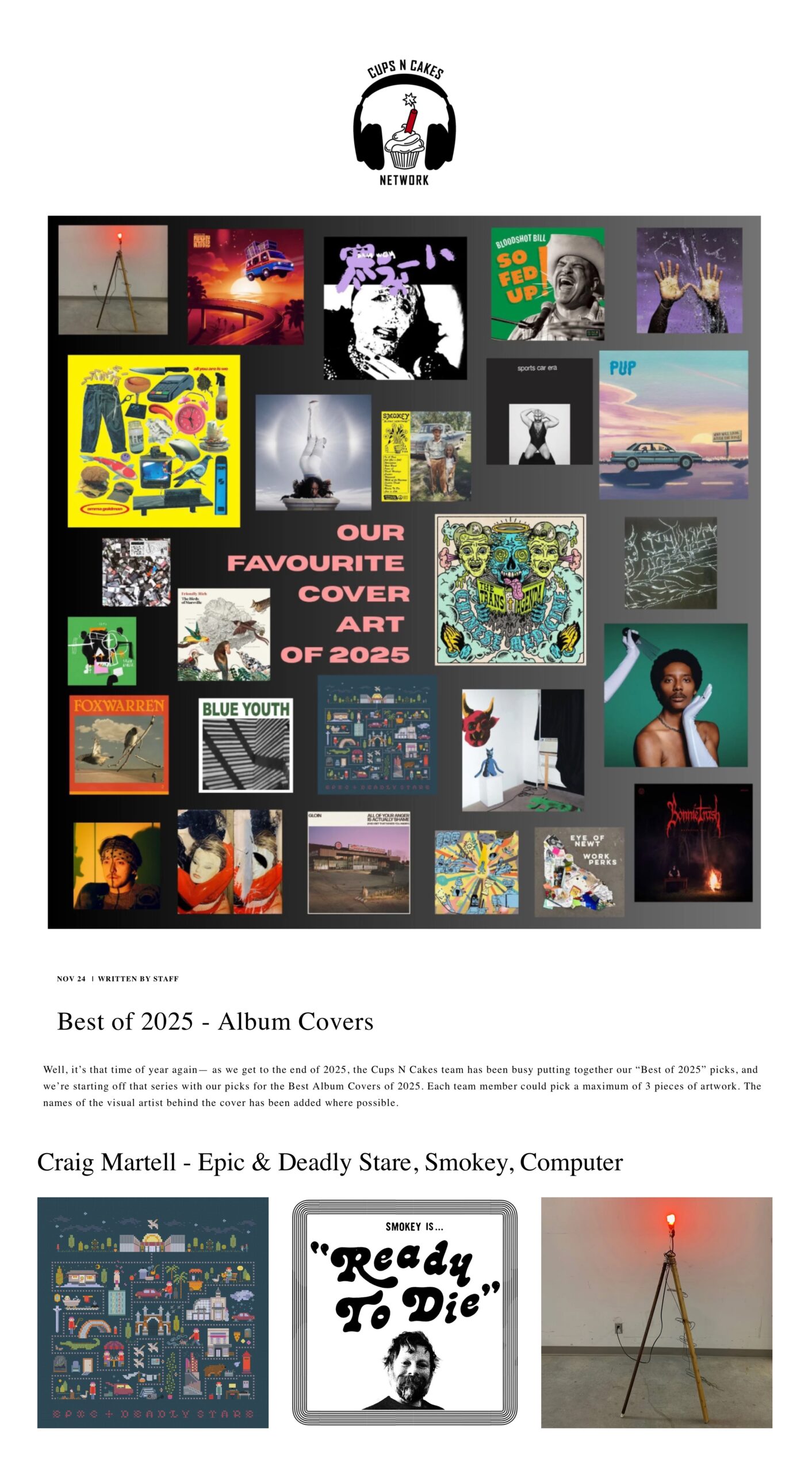 Much love to Craig Martell for picking Epic & Deadly Stare’s A library called Calder as one of his three selections for Cups N Cakes‘ Best of 2025 – Album Covers list.