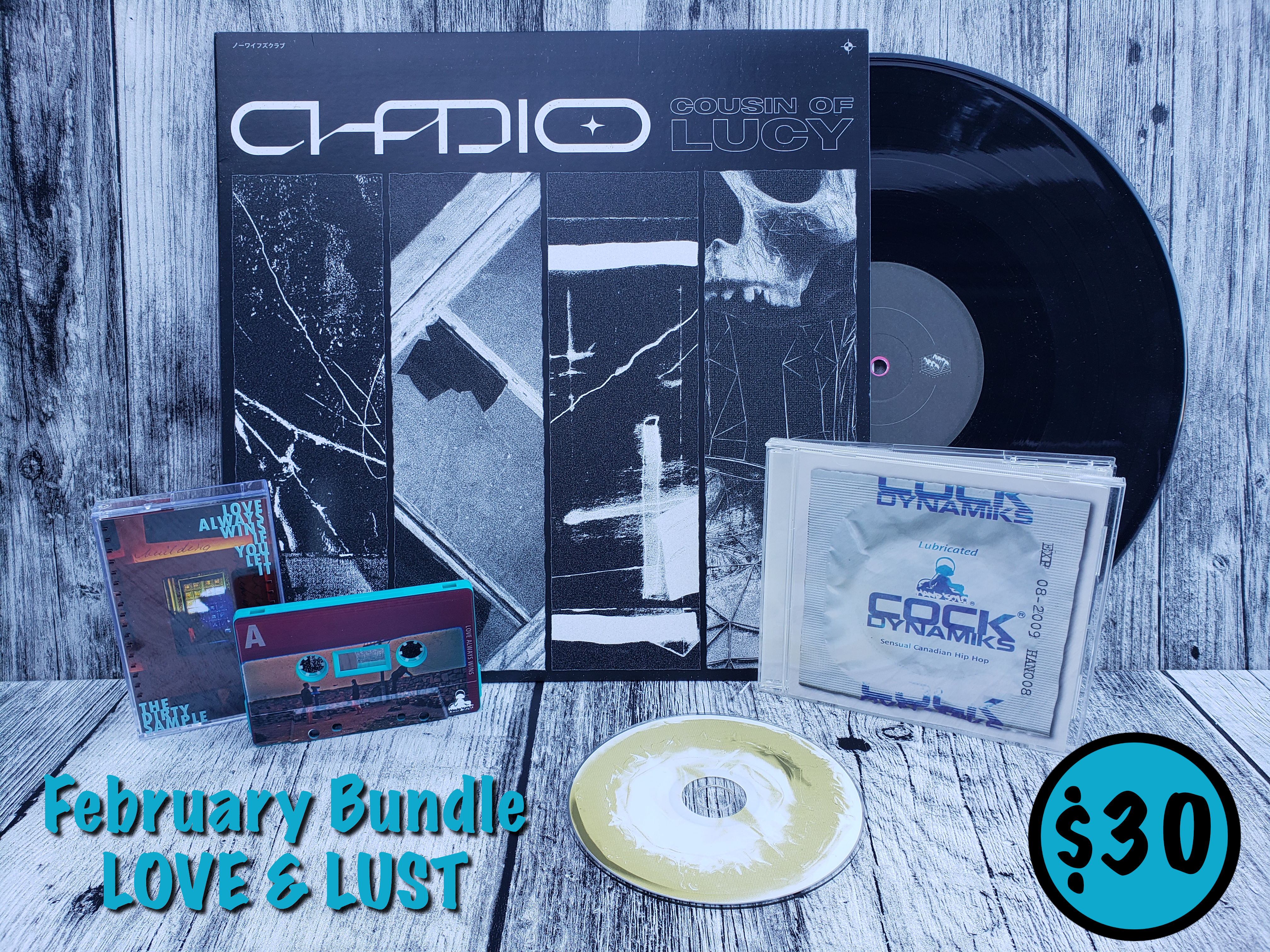 The February bundle for the 30th Anniversary was promoted alongside a few other deals for Bandcamp Friday, but it’s worth a reminder as we hit the second half of the month. To coincide with this month of love, our $30 bundle for February is a trio of albums that includes love lost with Chadio’s album of breakup songs, Cousin of Lucy, on 12″ vinyl, love found with The Dirty Sample’s Love Always Wins If You Let It on cassette, and some lustful thoughts with a CD copy of Cock Dynamics, a compilation of sex raps. That’s a lot of music for just $30! And only available until the end of the month, at which point it will be replaced with a brand new $30 bundle.