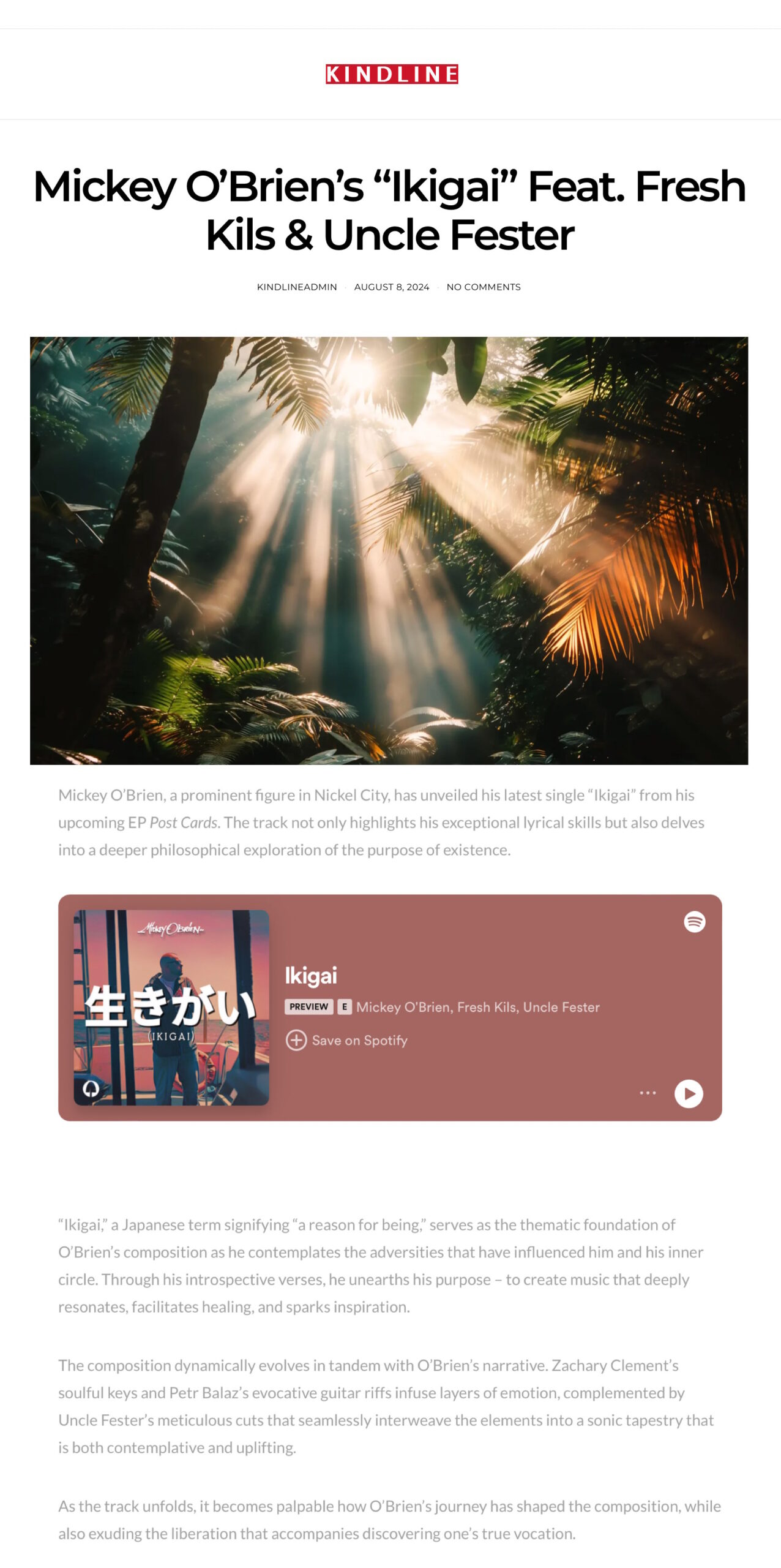 Coverage and brief review of Mickey O’Brien’s “Ikigai” by Kindline…
